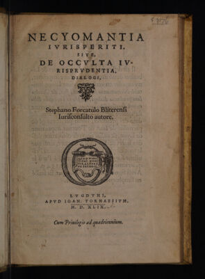 Necyomantia iurisperiti. Sive, de occulta iurisprudentia, dialogi / [Étienne Forcadel].