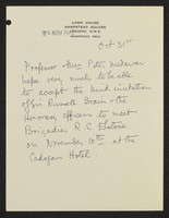 Cocktail Party for Brigadier Elstone. Correspondence and guest list