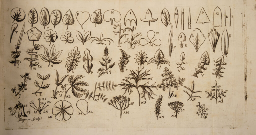 Credit: Methodus foliorum, seu plantae florae Monspeliensis, juxta foliorum ordinem, ad juvandam specierum cognitionem, digestae ... Methode pour connoître les plantes par les feüilles. Source: Wellcome Collection.