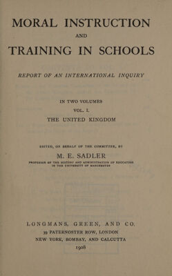 Moral instruction and training in schools : report of an international inquiry / ed., on behalf of the committee, by M. E. Sadler.