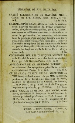 Credit: Formulaire pratique des hôpitaux civils de Paris, ou recueil des prescriptions médicamenteuses employées par les médecins et chirurgiens de ces établissements: avec des notes sur les doses, le mode d'administration, les applications particulières ... et des considérations générales sur chaque hôpital, sur le genre d'affections auquel il est spécialement destiné, et sur la doctrine des practiciens qui le dirigent / Par F.-S. Ratier. Source: Wellcome Collection.
