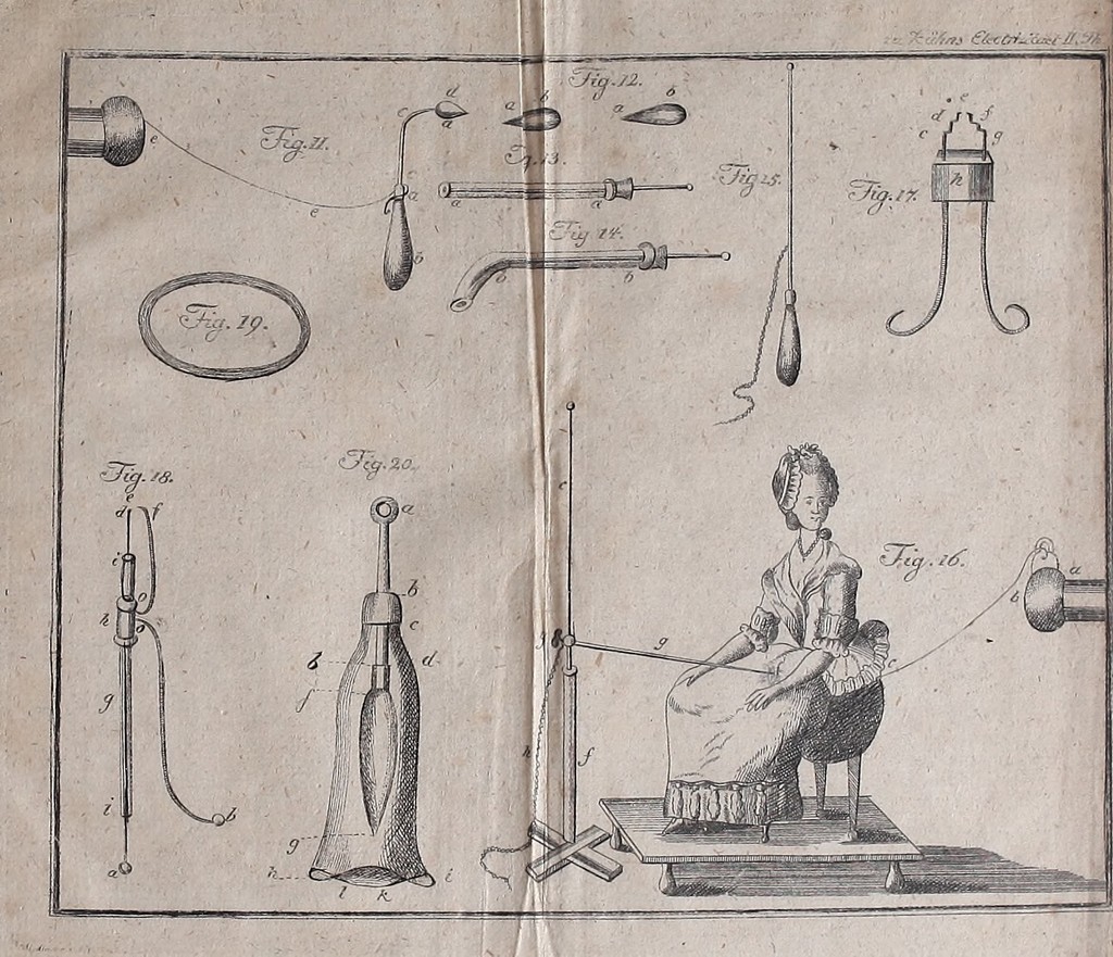Credit: Geschichte der medizinischen und physikalischen Elektricität : und der neuesten Versuche, die in dieser nüzlichen Wissenschaft gemacht worden sind / aus den neuesten Schriften zusammengetragen, und mit eigenen Versuchen vermehrt von Karl Gottlob Kühn. Erster [-zweyter] Theil. Mit Kupfern. Source: Wellcome Collection.