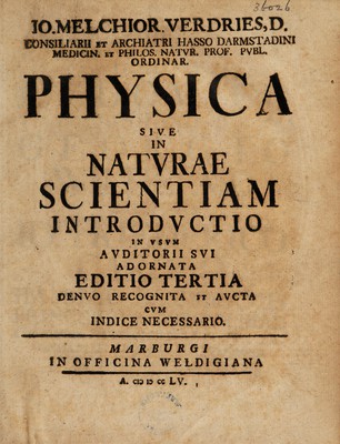 Physica, sive in naturae scientiam introductio / [Johann Melchior Verdries].