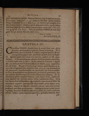 Epistolarum ad Johannem Vorstium scriptarum fasciculus: quo varia ad literas pertinentia ; itemque ingenuum de quibusdam hujus temporis controversiis theologicis judicium exponitur. Adjecta ... est und ad Jacobum Clauderum ; ex qua ejusdem de Beroso Anniano sententiam [sic] intelligi licet / [Thomas Reinesius].