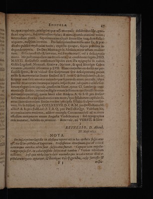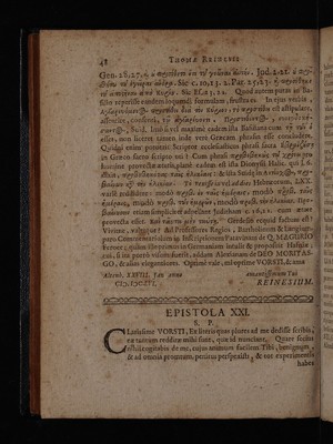 Epistolarum ad Johannem Vorstium scriptarum fasciculus: quo varia ad literas pertinentia ; itemque ingenuum de quibusdam hujus temporis controversiis theologicis judicium exponitur. Adjecta ... est und ad Jacobum Clauderum ; ex qua ejusdem de Beroso Anniano sententiam [sic] intelligi licet / [Thomas Reinesius].
