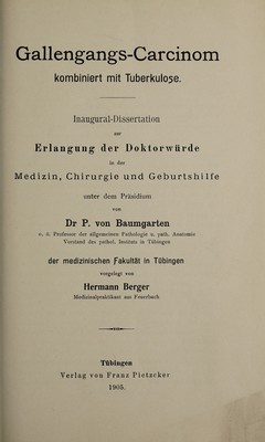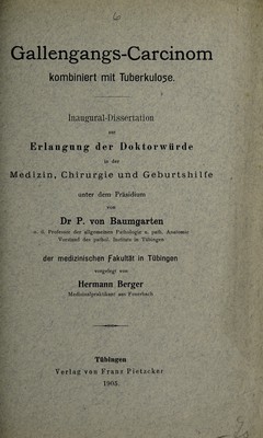 Credit: Gallengangs-Carcinom kombiniert mit Tuberkulose ... / vorgelegt von Hermann Berger. Source: Wellcome Collection.