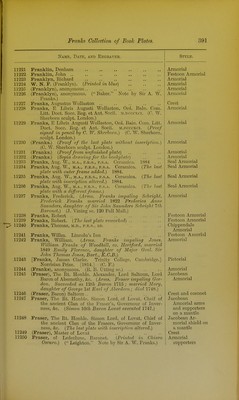 Catalogue of British and American book plates bequeathed to the British Museum by Sir Augustus Wollaston Franks / by E.R.J. Gambier Howe.