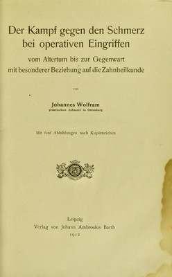 Der Kampf gegen den Schmerz bei operativen Eingriffen ... : mit besonderer beziehung auf die Zahnheilkunde / [Johannes Wolfram].