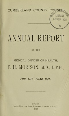 [Report 1922] / Medical Officer of Health, Cumberland County Council.