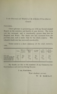 Credit: [Report 1904] / Medical Officer of Health, Aldershot U.D.C. Source: Wellcome Collection.