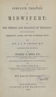 A complete treatise on midwifery, or, The theory and practice of tokology : including the diseases of pregnancy, labor, and the puerperal state / by Alf. A.L.M. Velpeau ; translated from the French by Charles D. Meigs.