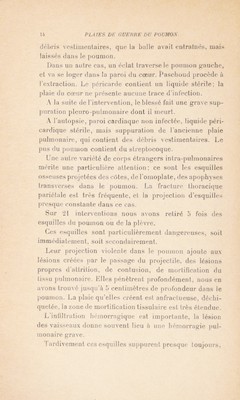 Les plaies de guerre du poumon : notes sur leur traitement chirurgical dans la zone des armées / Pierre Duval.