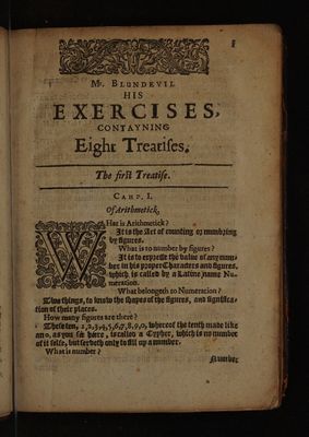 Mr. Blundevil His exercises, contayning eight treatises ... which treatises are very necessary to be read and learned of all young gentlemen that have not been excercised in such disciplines, and yet are desirous to have knowledge as well in cosmographie, astronomie and geographie, as also in the art of navigation, in which art it is impossible to profit without the help of these or such like instructions / To the furtherance of which art of navigation, the said Mr. Blundevil specially wrote the said treatises.