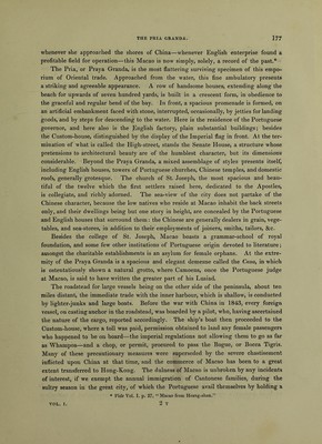 The Chinese Empire illustrated : being a series of views from original sketches, displaying the scenery, architecture, social habits etc. of that ancient and exclusive nation / by Thomas Allom ; with historical and descriptive letterpress by G.N. Wright. The work will also contain a succinct account of the history of China : a narrative of British connexion with that nation, the opium war of 1840, and full details of the causes and events of the present war.