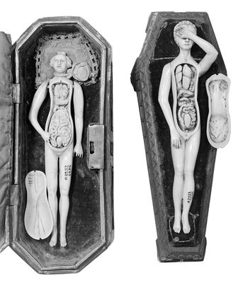 Credit: M0018657EB: Anatomical figures in ivory; two pregnant females. Source: Wellcome Collection.
