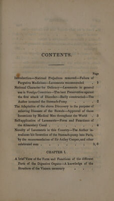 Credit: On indigestion and costiveness; a series of hints to both sexes, on the important, safe, and efficacious means of relieving diseases of the digestive organs by lavements ; with directions for the selection and use of apparatuses for their administration ; to which are added, observations on the mode of preserving health and prolonging life, by air, exercise, sleep, clothing, dieting, etc. Some general remarks, and useful hints, on the cause, prevention, and cure of obesity : also one hundred useful family prescriptions / [Edward Jukes]. Source: Wellcome Collection.