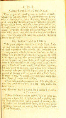 Credit: English housewifery : Exemplified in above four hundred and fifty receipts, giving directions in most parts of cookery ... With cuts for the orderly placing the dishes and courses; also bills of fare for every month in the year; and an alphabetical index to the whole ... / by Elizabeth Moxon. With an appendix, containing upwards of eighty receipts, of the most valuable kind; (many never before printed) ... To this edition is now added, and introduction, giving an account of the times when river fish are in season; and a table, shewing at one view the proper seasons for sea fish. Source: Wellcome Collection.
