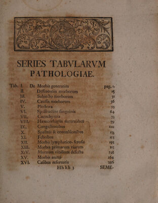 Conspectus pathologiae ad dogmata Stahliana praecipue adornatae et semeiologiae potissimum Hippocratico-Galenicae in forma tabularum repraesentatus / [Johannes Juncker].