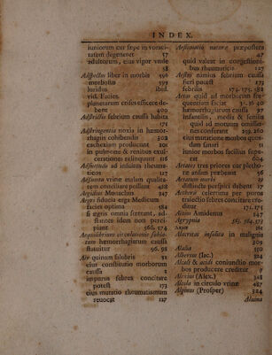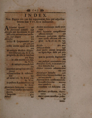![Bdominis *. asmt - 16 Abercromb (Dauid) — 348 Abfcejzo per decubitum & per | effluxum, a'TOSQTiG oT mod s- Ci, XaT EXMpIH) $12 fce] us $20 critici & fymptomatici 392, 401,520. $21 crifes eorum apud nos rare P ab antiquis Medicis dilsen- tius obferuati 528. lit. X x x. prognofis de iliis in febribus ' $23. feqq. . ^.» Ín aliis morbis 527. fqq. | lit. V v v. - - ab antiquis petenda fuit $29 . interdum peregrinas res con- tinent 5t infuperioribus & inferiori- bus ..393 ad aures 526. lit, Xx X, 528. lit. Vv v. lic/ Xxx. Abundantiag humorum a veteri- bus inter cauffas febrium nu- merata 170 - fanguinis 415 Acbores. E Acidum morborum cauffa-prin- ceps pog Acres humores congeftiones efficere debent 126 Aecrimonia. multorum |. C porbo- .rum cauffa efficiens effe co- gitur 12.68. 97. 93. 98, 145. 146 Acrifía 38 T. 494 Aciuires nimia 547 cuti morbi: eorum prognofis ex fignis fepe fallit 326. 327. .402 que in paralyfes degenerant .383 cur maligni nominentur 394. Acutifei morbi, num etiam cri- feos fubieéta fint 428 Ademas venenis. adnumeratur 288. 302 Addephagie- fübiecta 216 Adolefcentes hemorrhoidarii 9o eorum morbi 38. 39 Adpetitus num cauffis materiali- bsusadícribendus ^ 218.279 eius conditio 313 excedens vel deficiens 218. 219 abolitus; proftratus, depra- uatus 213. 2I 4 maior quam neceffitas poftu- lat 002 $9 iunio-](https://iiif.wellcomecollection.org/image/b30537125_0623.jp2/full/800%2C/0/default.jpg)