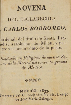 Novena del esclarecido S. Carlos Borromeo : cardenal del título de Santa Praxedis, arzobispo de Milan, y patron especialísimo de la peste.