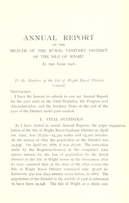 [Report 1906] / Medical Officer of Health, Isle of Wight R.D.C.