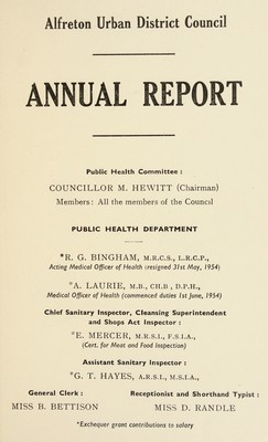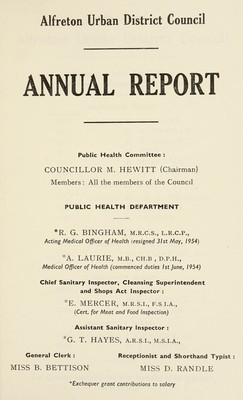 Credit: [Report 1954] / Medical Officer of Health, Alfreton U.D.C. Source: Wellcome Collection.