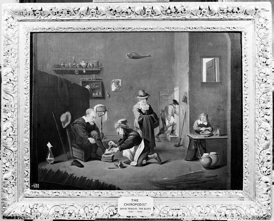 Credit: M0007648: A surgeon removing a plaster from a man's foot. Source: Wellcome Collection.