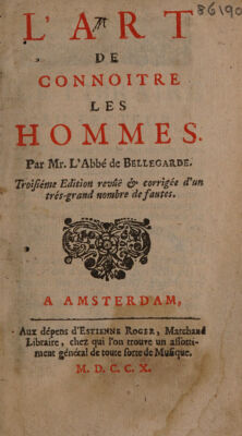 L'art de connoitre les hommes / [Bellegarde (Jean Baptiste Morvan)].