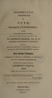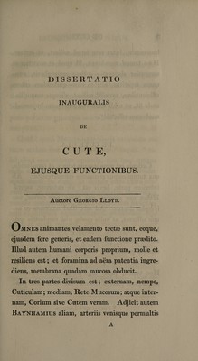 Dissertatio inauguralis de cute, ejusque functionibus / [George Lloyd].