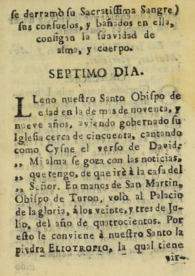 Novena afectuosa en honra del Esclarecido San Liborio, Obispo de la Santa Iglesia de Cenomayna, en la Francia, especial abogado contra el mal de piedra en la orina, de hijada, y dolor nefritico / dispuesta por un sacerdote de este arzobispado, favorecido del santo.