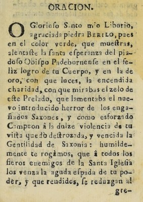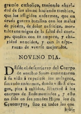 Credit: Novena afectuosa en honra del Esclarecido San Liborio, Obispo de la Santa Iglesia de Cenomayna, en la Francia, especial abogado contra el mal de piedra en la orina, de hijada, y dolor nefritico / dispuesta por un sacerdote de este arzobispado, favorecido del santo. Source: Wellcome Collection.