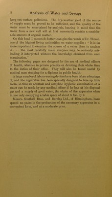 Credit: Practical hints on the analysis of water and sewage : for the use of medical officers of health, medical practitioners, sanitary engineers, etc / by Sidney Barwise. Source: Wellcome Collection.
