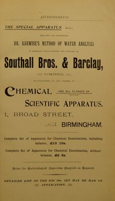 Credit: Practical hints on the analysis of water and sewage : for the use of medical officers of health, medical practitioners, sanitary engineers, etc / by Sidney Barwise. Source: Wellcome Collection.