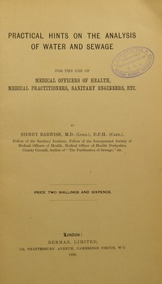 Practical hints on the analysis of water and sewage : for the use of medical officers of health, medical practitioners, sanitary engineers, etc / by Sidney Barwise.