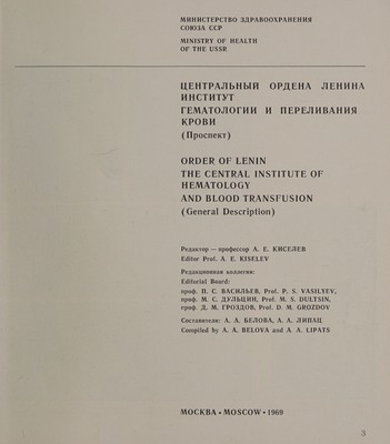 Order of Lenin, The Central Institute of Hematology and Blood Transfusion (General Description) / editor: A.E. Kiselev.