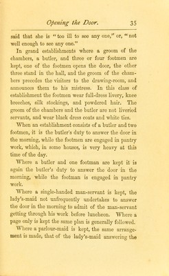 Credit: The duties of servants : a practical guide to the routine of domestic service / by the author of "Manners and rules of good society". Source: Wellcome Collection.