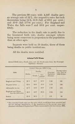 Credit: [Report of the Medical Officer of Health for Sutton UDC 1908]. Source: Wellcome Collection.