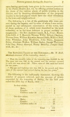 ![PUBLIC HEALTH ACT (11 & 12 Vict. Cap. 63.) REPORT TO THE GENERAL BOARD OF HEALTH ON A PRELIMINARY INQUIRY INTO THE SEWERAGE, DRAINAGE, AND SUPPLY OF WATER, AND THE SANITARY CONDITION OF THE INHABITANTS OF THE TOWNSHIP OF B A T L E Y, IN THE WEST HIDING OF YORKSHIRE. By WILLIAM RANGER, Esq., LONDON: PRINTED BY GEORGE E. EYRE AND WILLIAM SPOTTISWOODE, PRINTERS TO THE QUEEN'S MOST EXCELLENT MAJESTY. FOR HER MAJESTY'S STATIONERY OEPICE. 1852. [73]](https://iiif.wellcomecollection.org/image/b20421849_0003.jp2/full/800%2C/0/default.jpg)