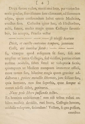 Credit: Oratiuncula, Collegii Medicorum Londinensis cathedrae valedicens / [William Browne]. Source: Wellcome Collection.