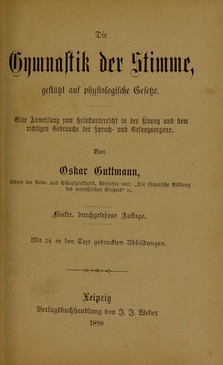 Die Gymnastik der Stimme : gestützt auf physiologische Gesetze eine Anweisung zum Selbstunterricht in der Uebung und dem richtigen Gebrauche der Sprach- und Gesangsorgane / von Oskar Guttmann.