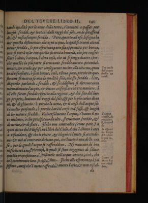 Del Tevere ... libri tre, ne' quali si tratta della natura, et bontà dell'acque, et specialmente del Tevere, et dell'acque antiche di Roma, del Nilo, del Pò, dell' Arno, et d'altri fonti et fiumi del mondo. Dell'usu dell'acque, et del bevere in fresco, con nevi, con ghiaccio, et con salnitro. Delle inondationi, et de' rimedii, che gli antichi Romani fecero, et che hoggidi si possan fare in questa, et in ogni altra inondatione / [Andrea Bacci].