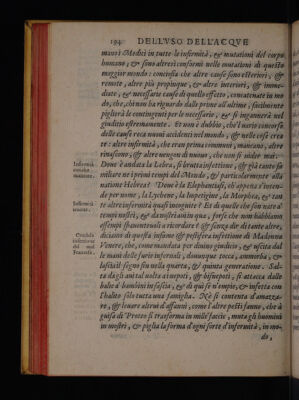 ![Che non pofla cau- far nè ro- gna, nè prurito. Che non pofla cau- «far oppila tioni. _ Proprietà d’alcune acque, 198. DELL'VSO DELL’ACOVE ue,s'ella non ha pofanza nè di (caldare ilfegatos né sica] re com che ragione fi può ella imputare s che poffa. caufar pri rito rogna zà ò freri delle inffammagioni ; 7 alcuneforii di | febbri: più che fe s faccia. ogni altra acquapura? Etys'ella hà colta di fcaldare ,&/ di feccar, come dici; tu confe (È adune| quesch'ella fia penetratiua, @ fottile ; &/ fe così è;come può | ellacaufar delle oppilationi ? Dirai ; ch'ella utene ad oppilar | mediante lafuatorbidezza @7 le molte parti terreStri GF | chesfiafî chiara, &) pofata quanto fî soglia, fempre lafciaò po-. co, è molto qualche poftainfondo . =——&——&6>;sesce>e és cai _ «2 = È bile in queStamaniera. muni, quando | uen ifero i} più Ò ò generalmente a ogni uno. tà , c'hanno certe acque delle quali altre fanno uenir perpe- denti,](https://iiif.wellcomecollection.org/image/b33349587_0216.jp2/full/800%2C/0/default.jpg)