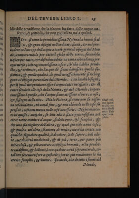 Del Tevere ... libri tre, ne' quali si tratta della natura, et bontà dell'acque, et specialmente del Tevere, et dell'acque antiche di Roma, del Nilo, del Pò, dell' Arno, et d'altri fonti et fiumi del mondo. Dell'usu dell'acque, et del bevere in fresco, con nevi, con ghiaccio, et con salnitro. Delle inondationi, et de' rimedii, che gli antichi Romani fecero, et che hoggidi si possan fare in questa, et in ogni altra inondatione / [Andrea Bacci].