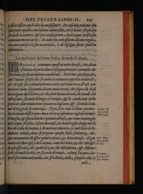 Del Tevere ... libri tre, ne' quali si tratta della natura, et bontà dell'acque, et specialmente del Tevere, et dell'acque antiche di Roma, del Nilo, del Pò, dell' Arno, et d'altri fonti et fiumi del mondo. Dell'usu dell'acque, et del bevere in fresco, con nevi, con ghiaccio, et con salnitro. Delle inondationi, et de' rimedii, che gli antichi Romani fecero, et che hoggidi si possan fare in questa, et in ogni altra inondatione / [Andrea Bacci].