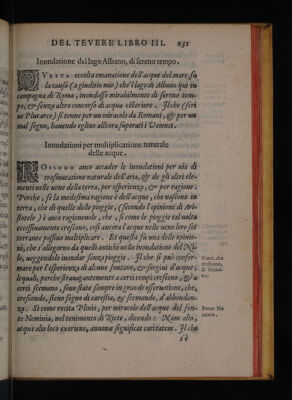 Del Tevere ... libri tre, ne' quali si tratta della natura, et bontà dell'acque, et specialmente del Tevere, et dell'acque antiche di Roma, del Nilo, del Pò, dell' Arno, et d'altri fonti et fiumi del mondo. Dell'usu dell'acque, et del bevere in fresco, con nevi, con ghiaccio, et con salnitro. Delle inondationi, et de' rimedii, che gli antichi Romani fecero, et che hoggidi si possan fare in questa, et in ogni altra inondatione / [Andrea Bacci].