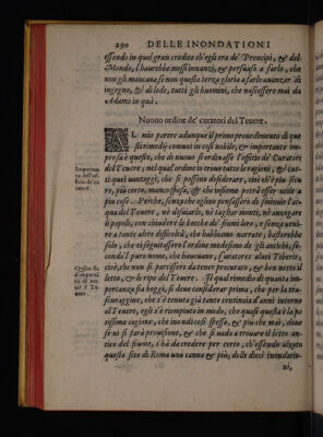 Del Tevere ... libri tre, ne' quali si tratta della natura, et bontà dell'acque, et specialmente del Tevere, et dell'acque antiche di Roma, del Nilo, del Pò, dell' Arno, et d'altri fonti et fiumi del mondo. Dell'usu dell'acque, et del bevere in fresco, con nevi, con ghiaccio, et con salnitro. Delle inondationi, et de' rimedii, che gli antichi Romani fecero, et che hoggidi si possan fare in questa, et in ogni altra inondatione / [Andrea Bacci].