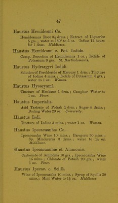 Credit: The pharmacopoeias ... of the London hospitals : arranged in groups for easy reference and comparison / by Peter Squire. Source: Wellcome Collection.