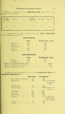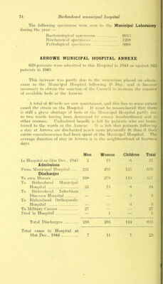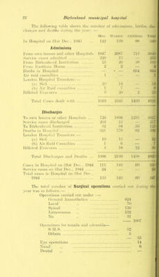 ![^riic following t;il)le shows the nun iil)er of adnnssi(jn-, lnrtlJ'^ , dis- charges and deaths din'ing the yea’’: — .Men ' ^\'(njien Cliildi ell 1 olul In Hfjspital on hist Dec., llidh 122 lh9 HS .849 Admissions Kioin own homes and other ilos))ilals 1947 29S7 71 d .8s49 Service cases adinilted 22() Ih 2;;h l^d'oni Dii’kenhead Instil iition 2d 29 ds 198 hroiii Dasthani House o o — 4 Jlirths in Hospital — ' — 994 994 y\ir raid casualties 1 — 1 London Hos))ital Transfers: — (a ) Sitdc 29 11 .84 (1) j Air Laid casualt ics 1 — H Hilleted iMaciu'cs '■> 2(> o 2d d'otal Cases dealt with Ihi9 21l)h 14h9 4921 Discharges To own homes or other Hospitals — 729 1S99 ]29d 8917 Service cases discdiarged 291 ih - • 217 ddy Hirk'enheatl Institntioji h2 :;4 d9 12d Deaths in Hospital :121 179 '. »2 d92 Loudon Hospital dh’ansfers: — (‘0 19 Ih 82 (h) Ail- Laid Casiiadties 1 9 — 1 Hilleted Lvacnc'es \} f > IS 12 hh Total Discdiarges and Deaths ... lh99 21 d9 14ds 4928 Cases in Hos))ital on hist Dt'c.. D44 111 14h 99 828 Service cases on hist Dec., 1944 24 — — 24 Total cases in Hospital on h>lst Dec., 1944 Ihd 14h 99 .847 The total number of Surgical operations carried out dui’in n year was as follows: — Operatiojis carried out under :■ (leneral Anaesthetics 924 Local ,, 79 8])inal ., IdO Intrav’enous ,. 182 No hi Operations for tonsils and adenoids— S.IM.S 1097 32 Others h Eye operations — ho 14 Nasal ,, 6 Dental ,,](https://iiif.wellcomecollection.org/image/b28927382_0026.jp2/full/800%2C/0/default.jpg)