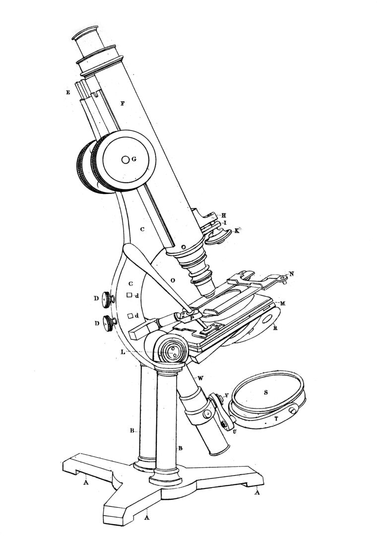 M0011542: Large achromatic compound microscope. Public Domain Mark. Source: Wellcome Collection.