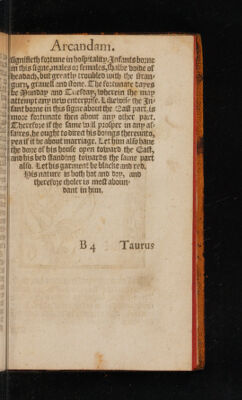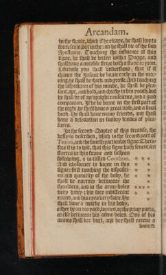Credit: The most excellent, profitable, and pleasant booke of the famous doctor and expert astrologian, Arcandam, or Alcandrin, to finde the fatall destiny, constellation, complexion, and naturall inclination of every man and child by his birth. With an addition of Physiognomie ... / Now newly turned out of French ... by William Warde. Source: Wellcome Collection.